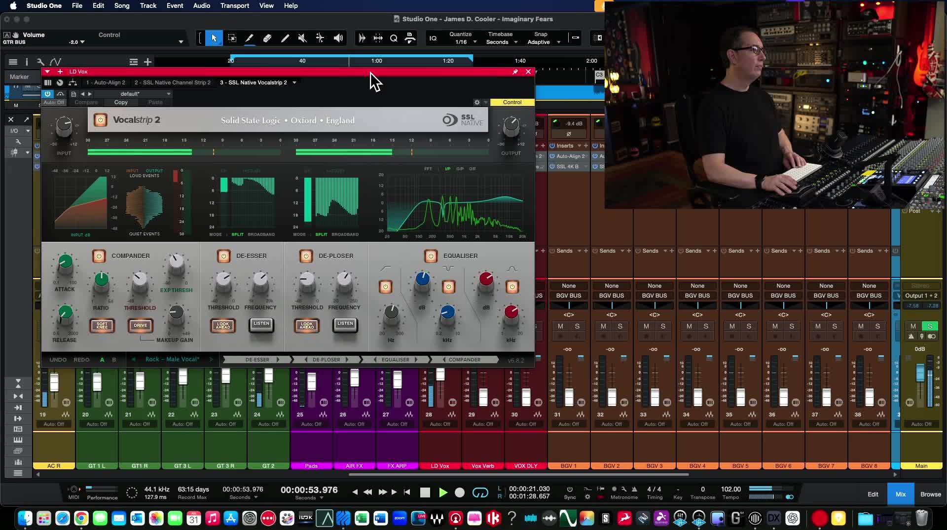 SSL Vocal Strip 2 on lead vocal channel — showing compressor, de-esser, and simple EQ tweaks.