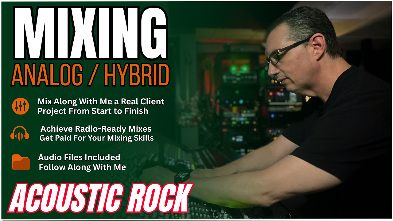 Experience the entire process of mixing a song using an analog console, outboard gear, and plugins. With over 5 hours of content, including audio files and several free bonuses. I take you behind the scenes of a real client mix. We mix the song together from start to finish in real-time. Learn not just the "What" but the "Why".