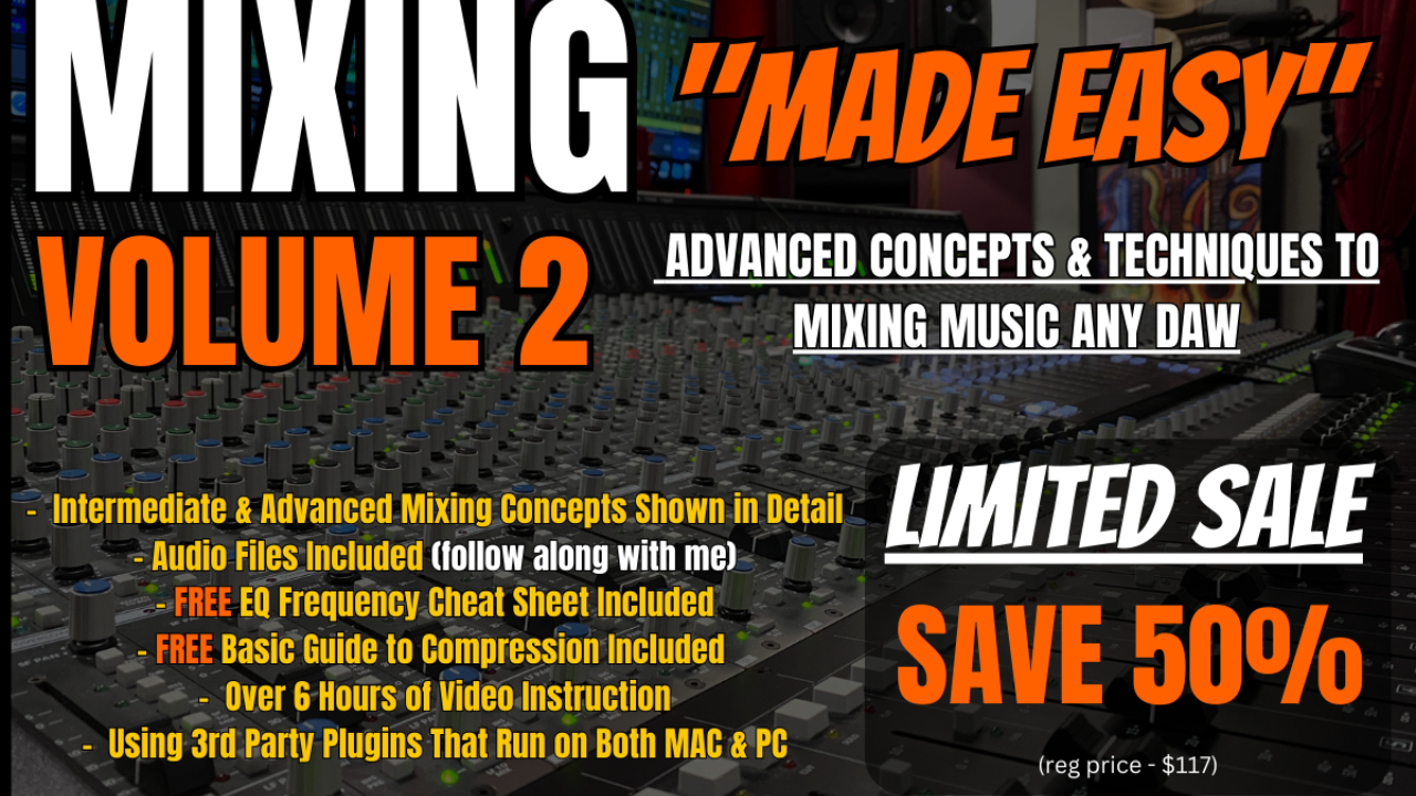 "David, I just finished Mixing Made Easy Volume 2 series and it is awesome. When I asked you for more advanced info you answered the call. I learned so many new techniques I was shocked. If anyone wants to take their mixing to the next level I highly recommend this course."